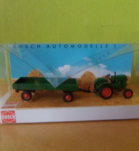 Busch H0 54102 Deutz FIM 414 Tractor met aanhanger.